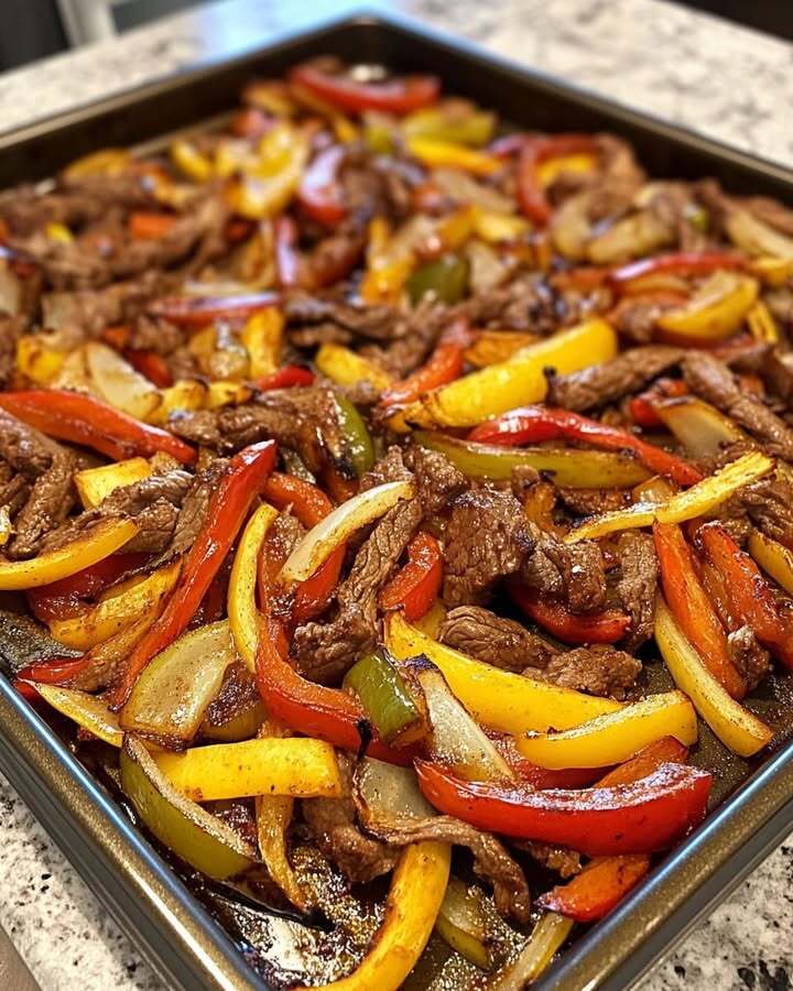 These Sheet Pan Beef Fajitas are a perfect weeknight meal—easy to prepare, bursting with flavor, and simple to clean up. Juicy, thinly sliced flank steak and colorful bell peppers are seasoned with a classic blend of spices and roasted on a single pan until tender and perfectly cooked. Just add a squeeze of lime and serve everything hot in warm tortillas.